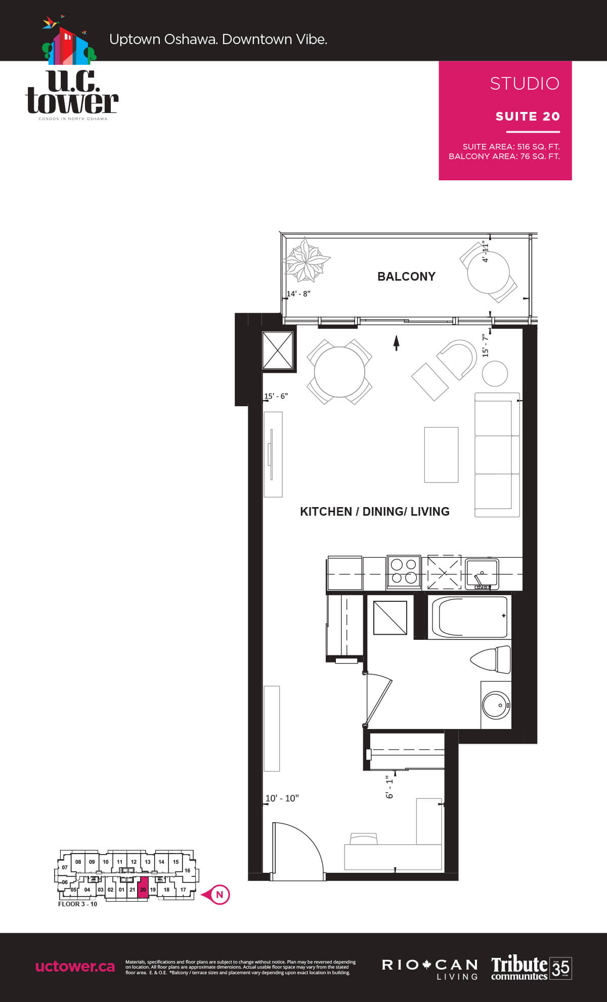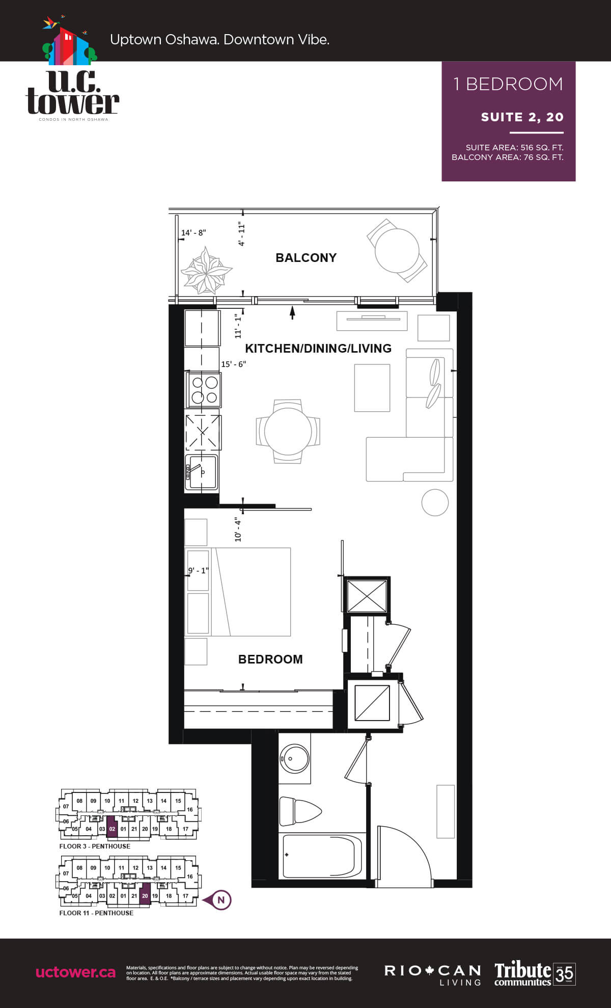 After successfully launching UC, UC Towns, and UC Towns 2, we're pleased to introduce UC Tower! Nestled into the heart of Oshawa's most vibrant area, UC Tower is where the action is. With a Ontario Tech University campus and Durham College just steps away, the area is buzzing with youthful energy. UC Tower is designed to help you enjoy life in your own neighbourhood.